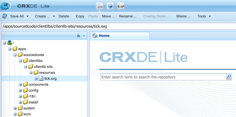 Example: /etc.clientlibs/sourcedcode/clientlibs/cllienlib-site/resources/tick.svg